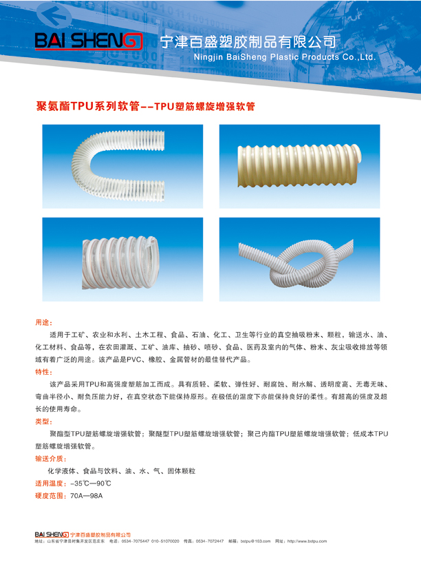 > 聚氨酯TPU系列软管--TPU塑筋螺旋增强软管