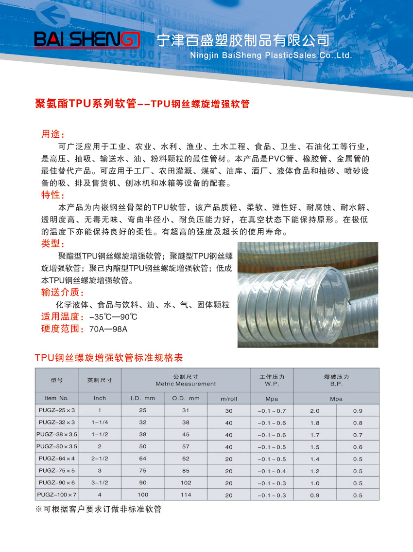 > 聚氨酯TPU系列软管--TPU钢丝螺旋增强软管